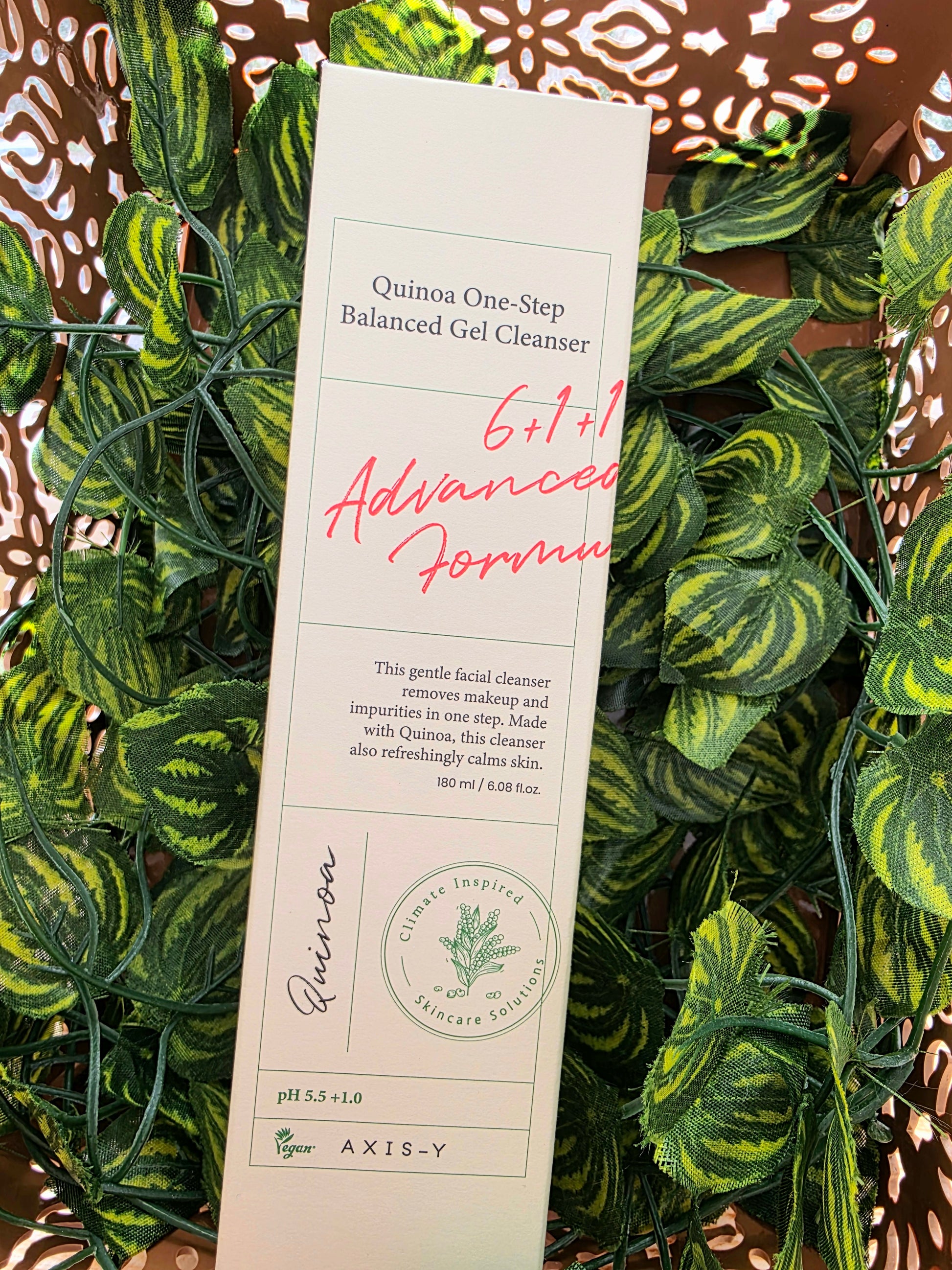 Axis-Y Quinoa One Step Balanced gelinis veido prausiklis – 2-in-1 valomasis gelis, kuris švelniai valo odą ir pašalina makiažą, pamatą, apsaugines priemones nuo saulės, nešvarumus ir dulkes. Sugeria perteklinį sebumą, švelniai valo odą nesutrikdydamas lipidinio barjero ir palaikydamas optimalų epidermio pH (5,5). Išlaiko odos drėgmę net po plovimo, nesukelia sausumo ar tempimo pojūčio. Turi ryškų antibakterinį poveikį, ramina dirginimus ir skatina nedidelių uždegimų gijimą. Tinka visų tipų odai.