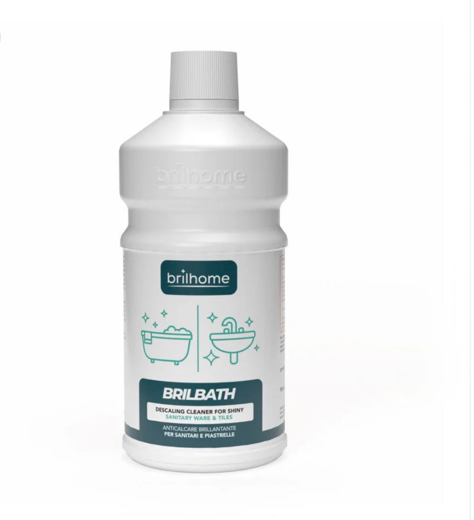 BRILBATH yra purškiamas kalkių nuosėdų valiklis, kuris kruopščiai nuvalo visus vonios kambario paviršius. Efektyviai ir greitai pašalina kalkių nuosėdas, vandens likučius, sunkiai įsisenėjusius nešvarumus, muilo likučius, oksidacijas ir kitas smulkias apnašas.