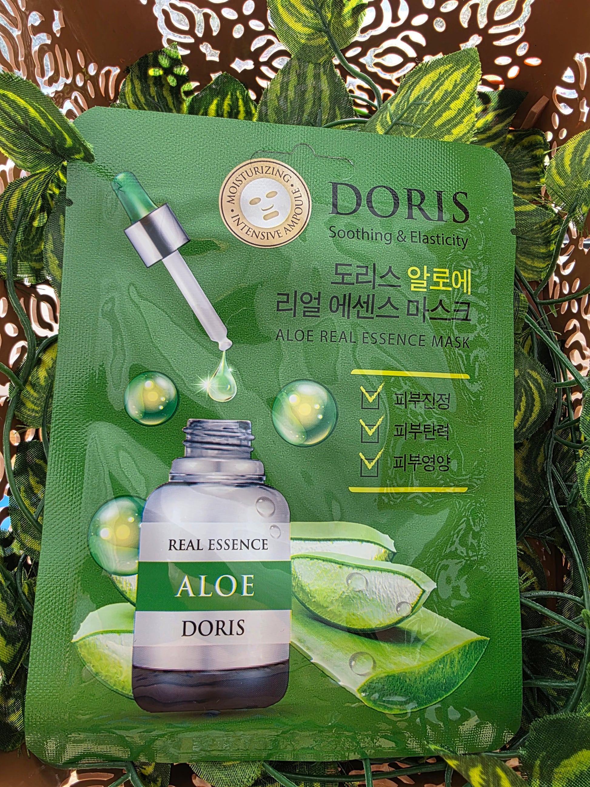 Doris lakštinė veido kaukė su alavijo ekstraktu – lakštinė veido kaukė su alavijų lapų ekstraktu (25 mg) ir vilkdalgio ekstraktu, kurie ramina, tonizuoja odą, turi priešuždegiminių savybių bei mažina niežėjimą ir dirginimą. Sudėtyje esantys hialurono rūgštis ir betainas minkština odą, papildomai palaiko drėgmę, lygina ir ramina odą. Monardos, granatų, chrizantemų ir levandų ekstraktų kompleksas ramina odą, veikia kaip antioksidantas ir pagerina odos spalvą bei toną.
