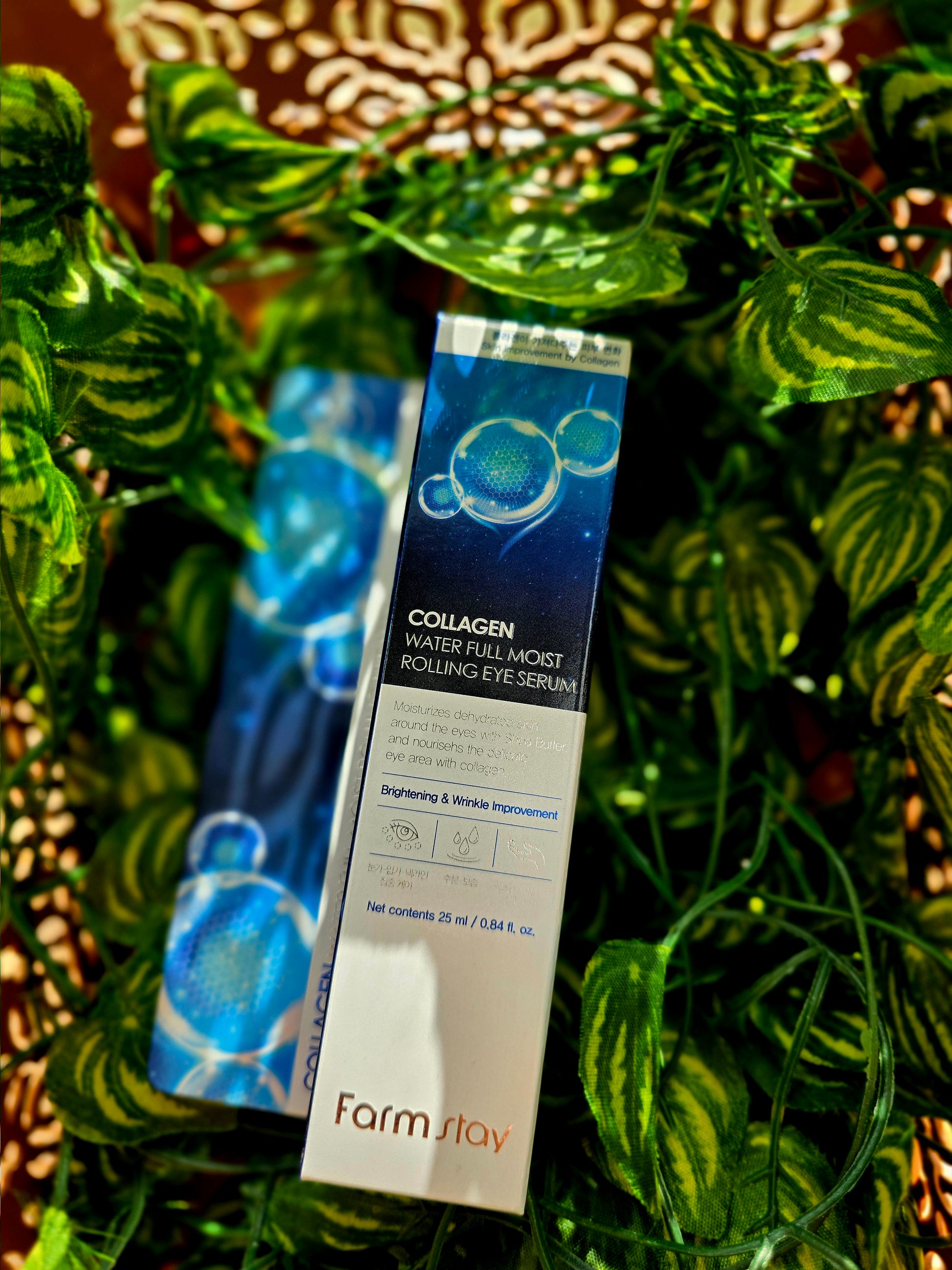 FarmStay paakių kremas COLLAGEN WATER FULL MOIST – paakių serumas, suteikiantis intensyvų drėkinimą ir tonizavimo efektą. Produktas lygina gilias išraiškos ir senėjimo raukšleles, apsaugo odą nuo priešlaikinio senėjimo, maloniai vėsina, mažina paburkimus ir kovoja su tamsiais ratilais po akimis. Sudėtyje esantys baltųjų persikų, magnolijų, kamelijų, frezijų ir slyvų žiedų ekstraktai aprūpina odą naudingomis medžiagomis ir vitaminais, suteikia antioksidacinį ir raminantį poveikį.