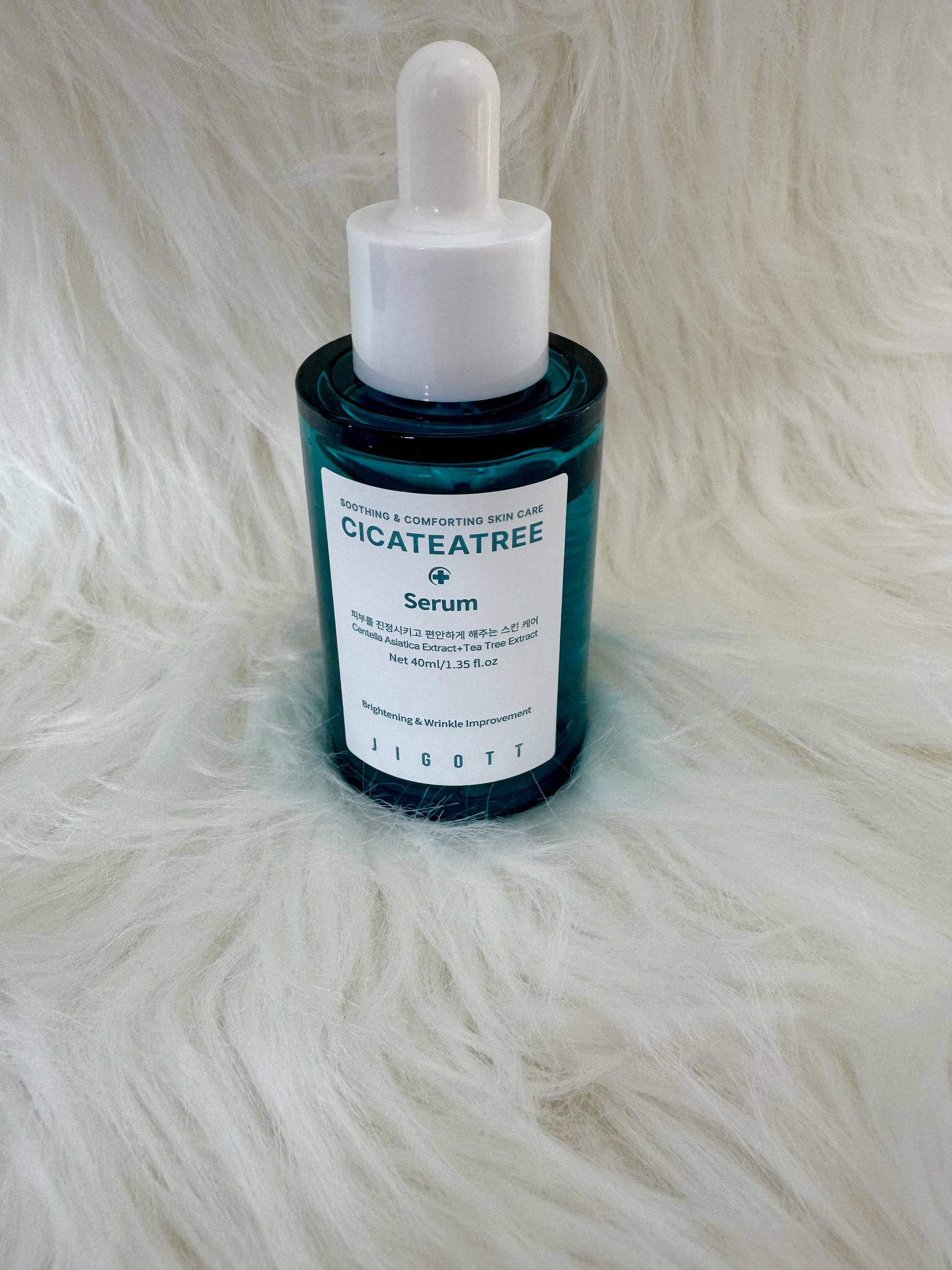 JIGOTT Cicateatree veido serumas – tikras išsigelbėjimas jautriai, sudirgusiai ar probleminei odai. Formulėje esantys centelės (Centella Asiatica) ir arbatmedžio (Tea Tree) ekstraktai veiksmingai ramina odą, mažina paraudimus, lengvina uždegimus bei padeda greičiau gyti spuogeliams.